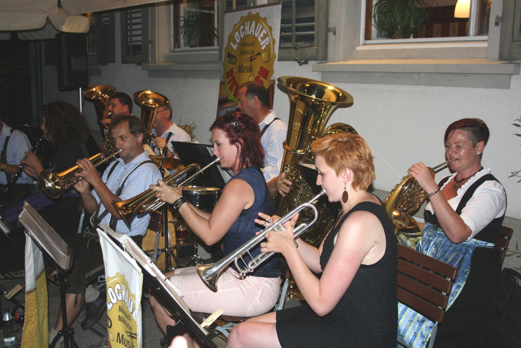 Blasmusik-Stimmung mit den „Lochauer Bierblosn“ im Brauereigasthof Reiner.