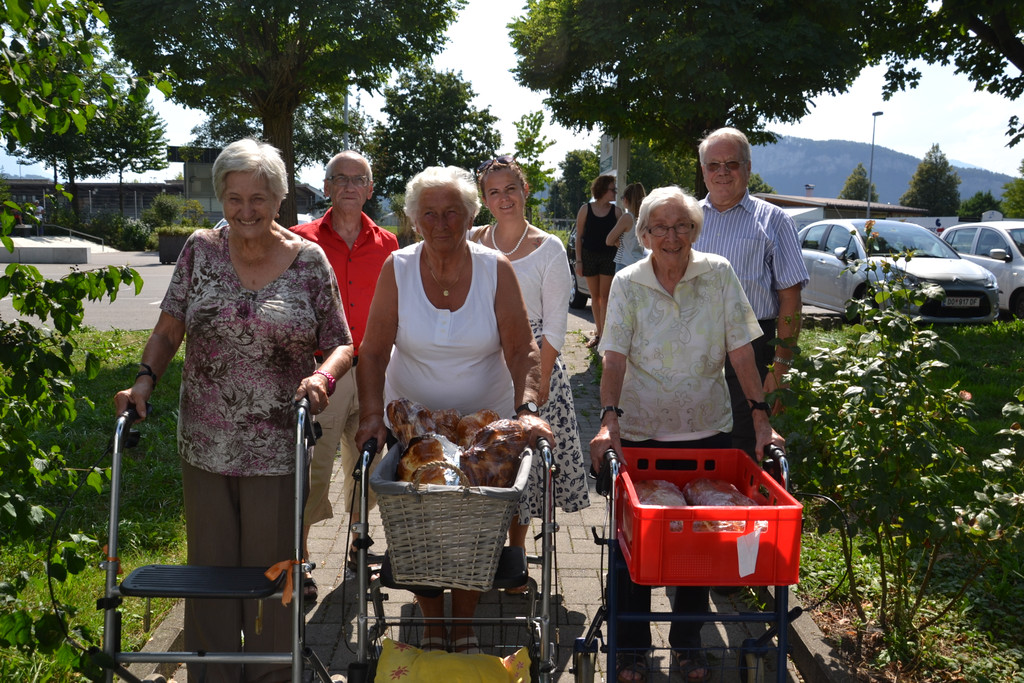Anna jaksch, Rosmarie Kalin und Lydia Bösch brachten frisch gebackenes Zopfbrot