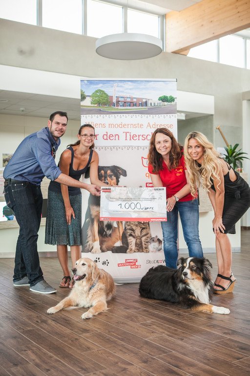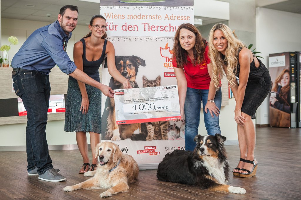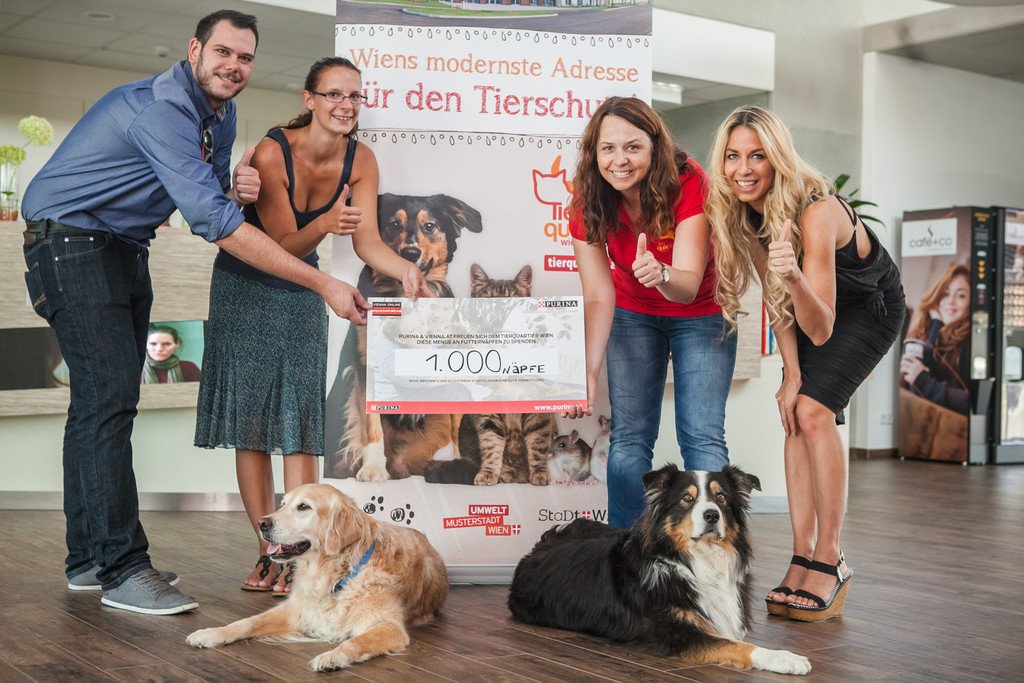 VIENNA.at spendet PURINA Tierfutter an das TierQuarTier Wien: Scheckübergabe-Shooting