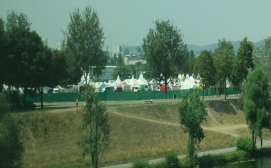 Angebliches Flüchtlingscamp auf der Wiener Donauinsel (eigentlich Afrika Tage)