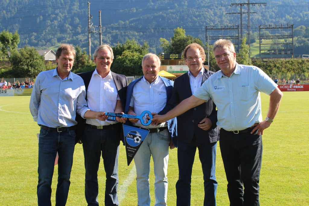 Symbolische Schlüsselübergabe (v.l. Johann Burtscher, Harald Sonderegger, Leo Windtner, Florian Kasseroler und Peter Schneider)