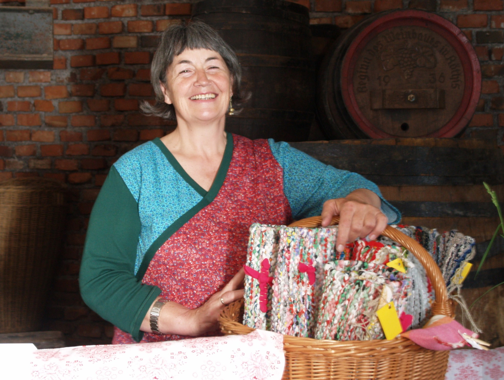 Ruth Schneider aus Egg mit ihren Bändelteppichen