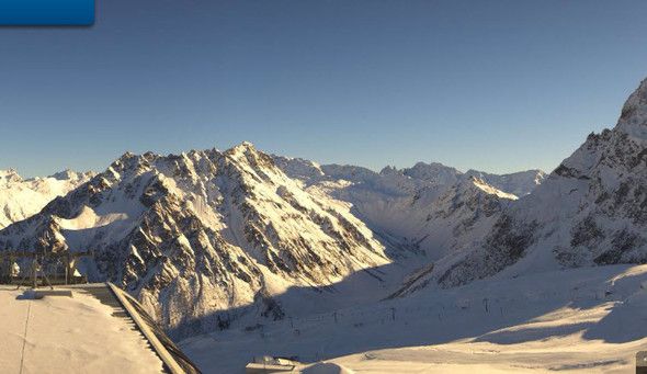 Panorama-Blick von der Bergstation der Kristallbahn im Ski- und Wandergebiet Gargellen. Kamera auf 2.270 Meter Seehöhe. (Quelle: gargellen.panomax.com/)