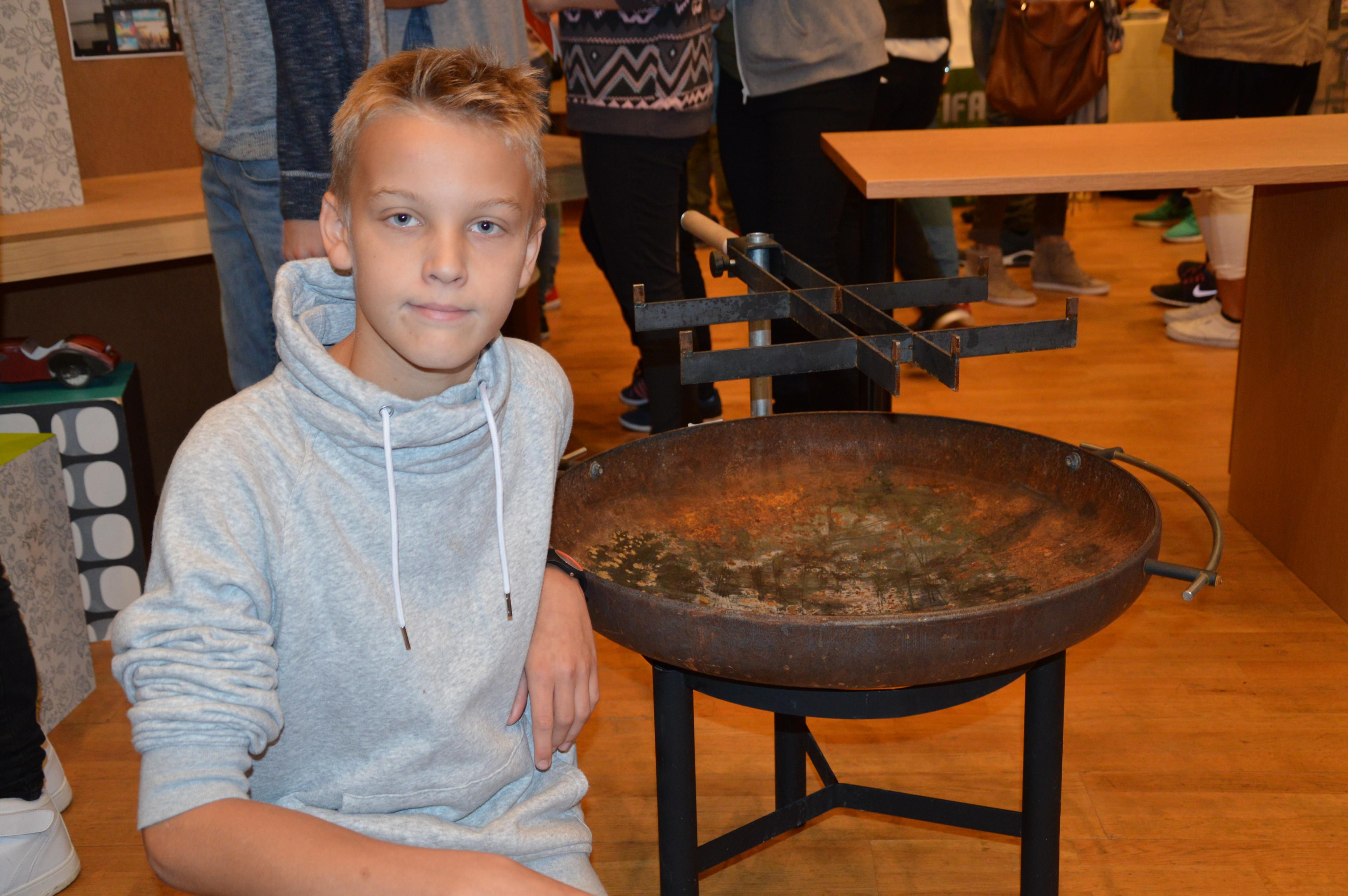 Noah Hartmann präsentiert stolz seinen Grill