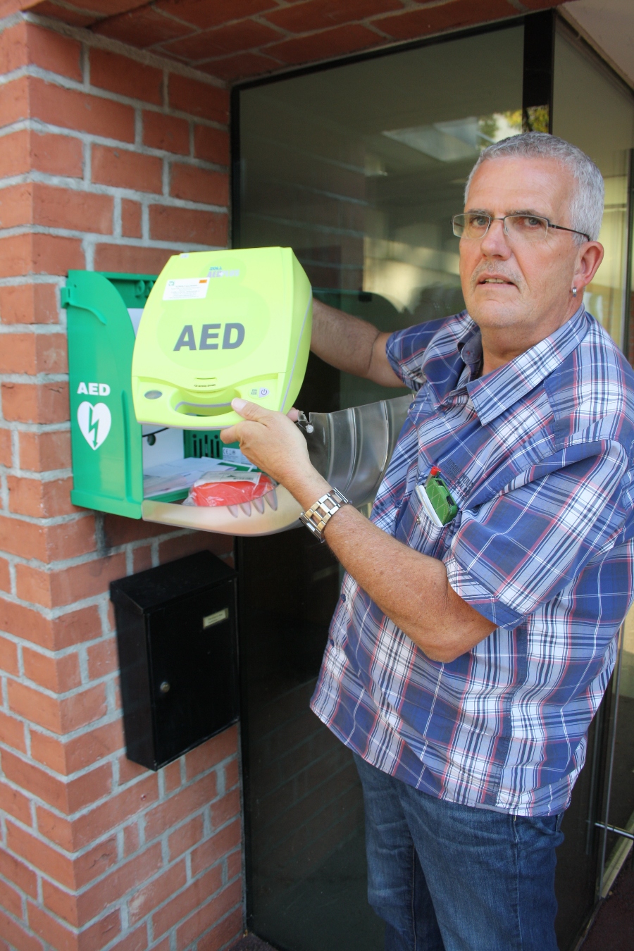 Das neue Defibrillationsgerät befindet sich an einem geschützten Platz direkt beim Stiegenaufgang zum Pfarrheimeingang.t.