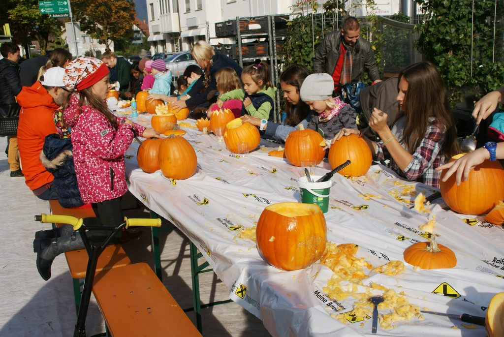 Kürbisse und Rikschas als Blickfang auf dem Markt
