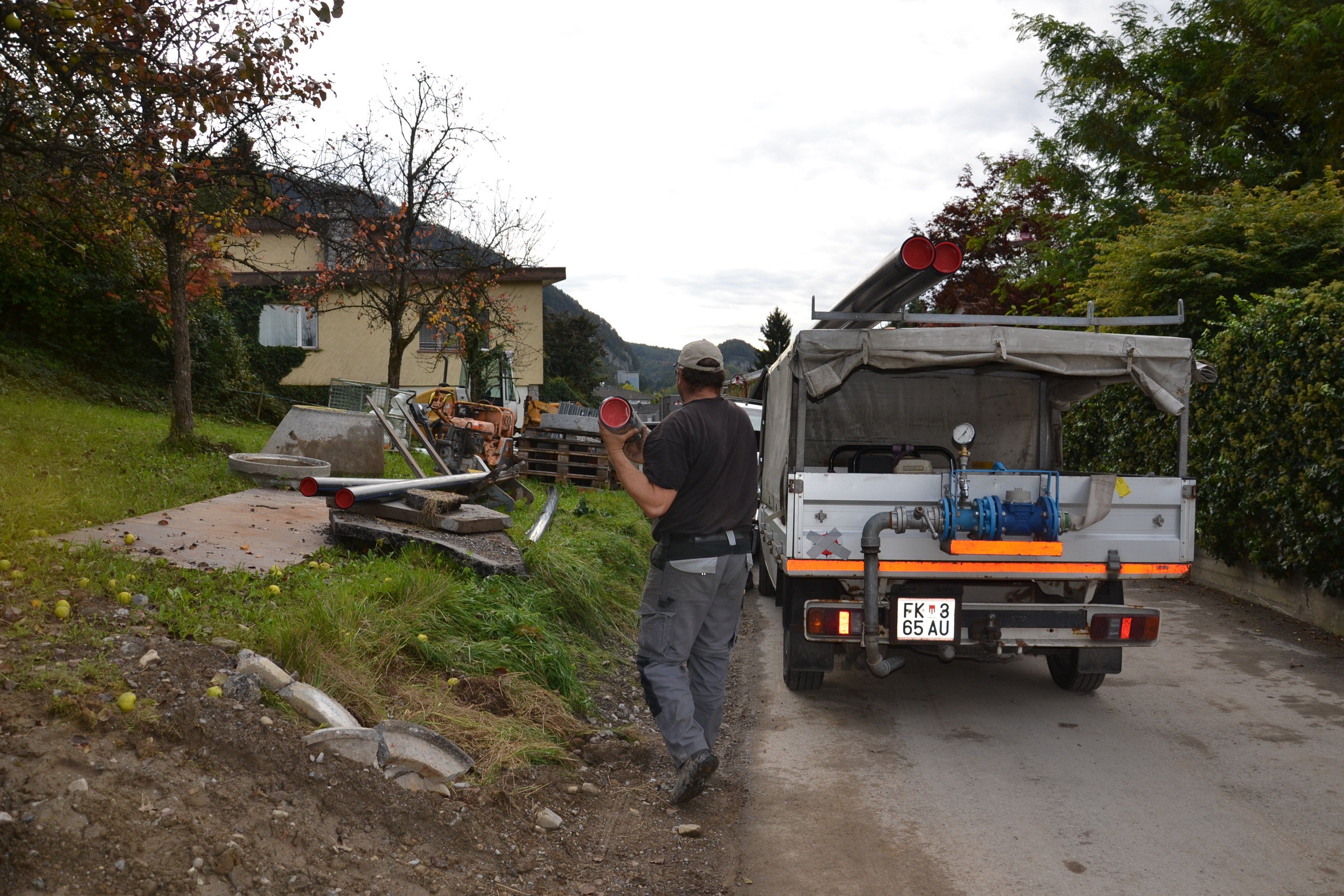 Die Wasserrohre werden abgeladen