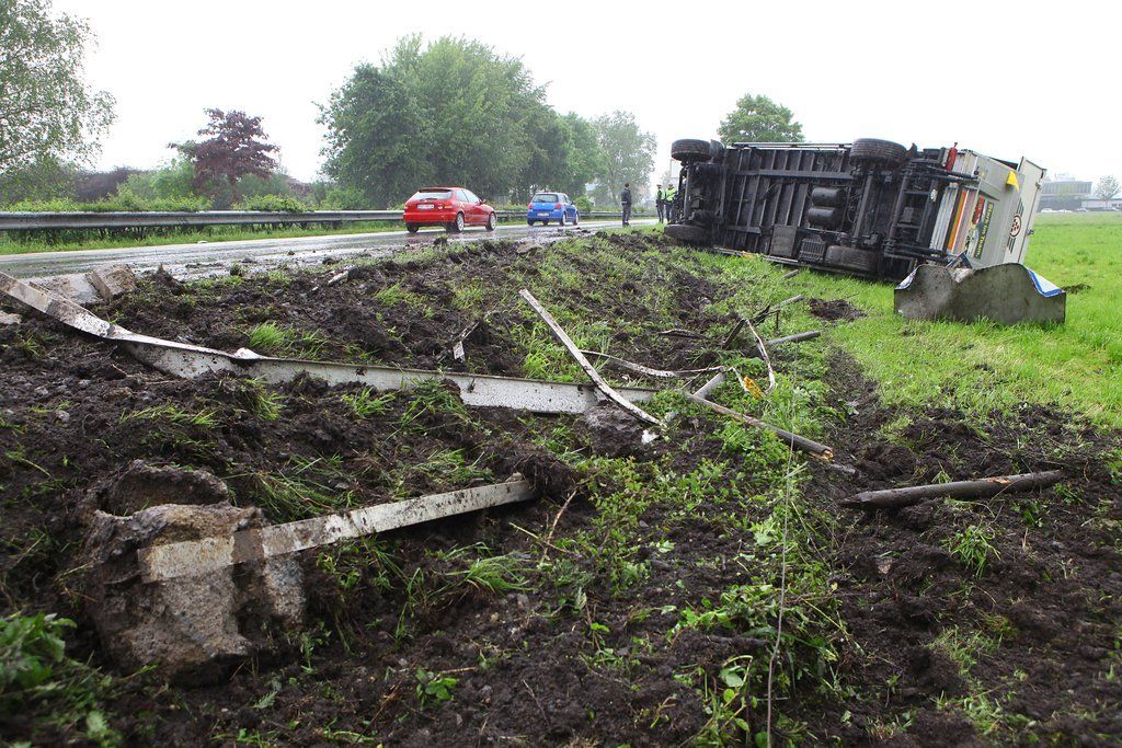Lustenau: LKW-Anhänger umgekippt
