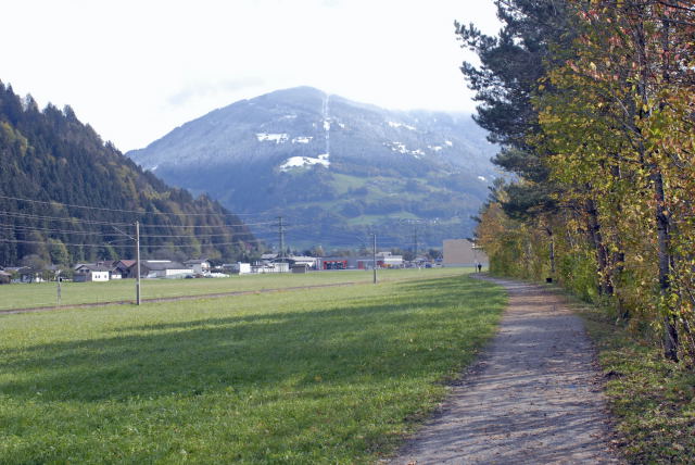 Der alte und neue Radweg Schruns - Gantschier, Radfahrer, die Montafonerbahn und eine Eidechse.