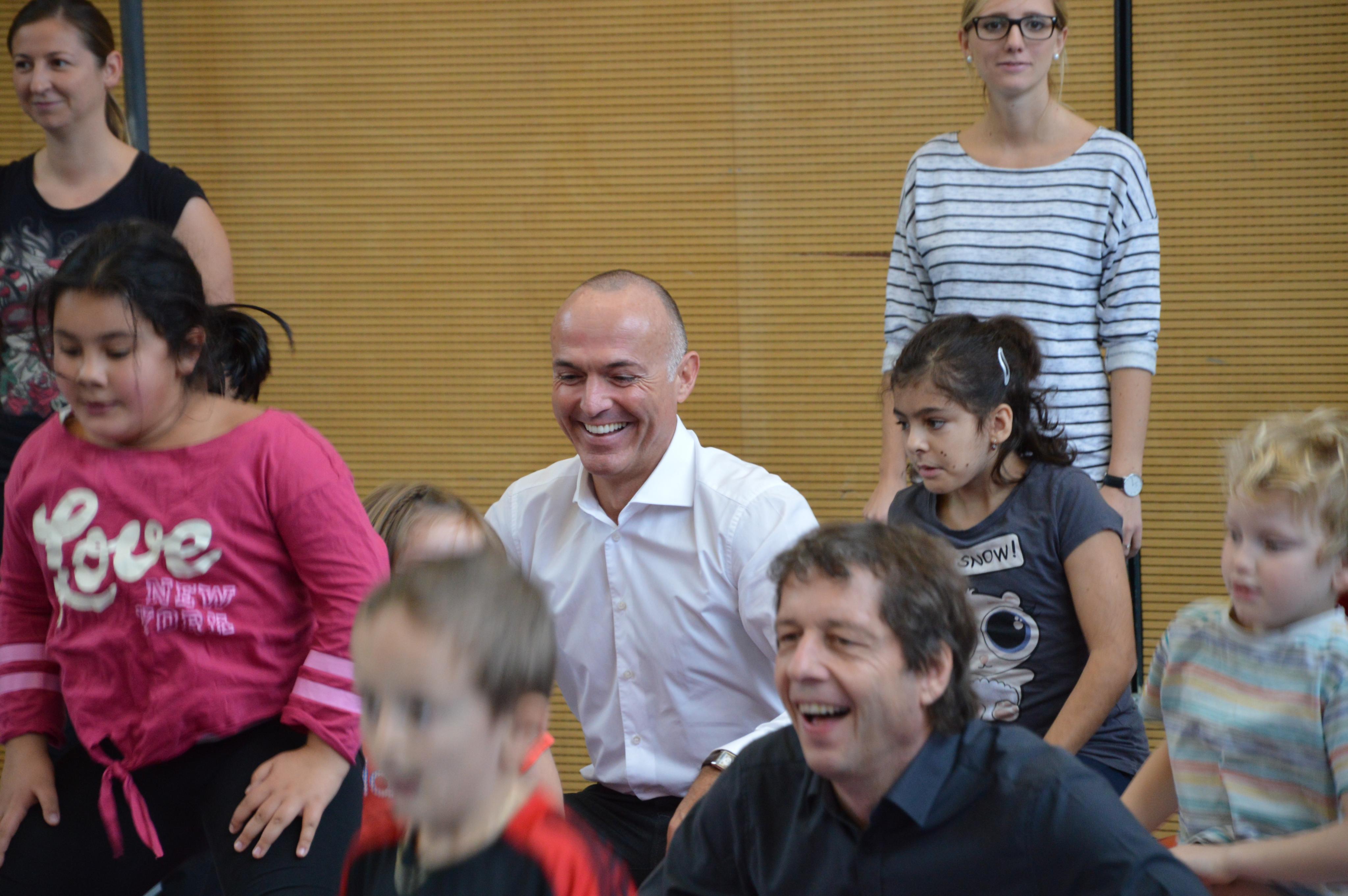 Auch die Prominenz turnte mit (links Minister Klug, rechts Gemeinderat Bernd Bösch))