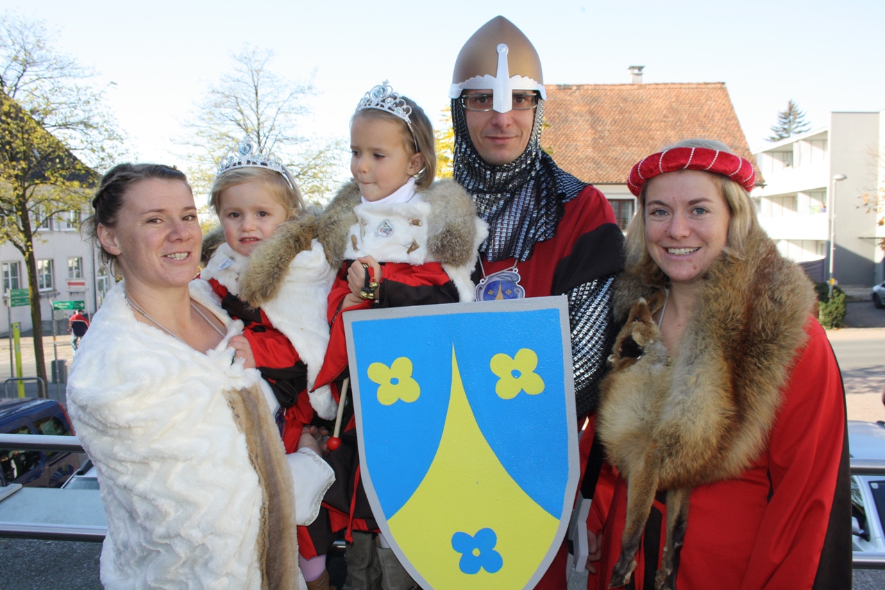 Die Berger Zunft „im neua Häs“ als stolze Ritter und Burgfrauen und der neuen Bürgermeisterin Irene Jürgens.