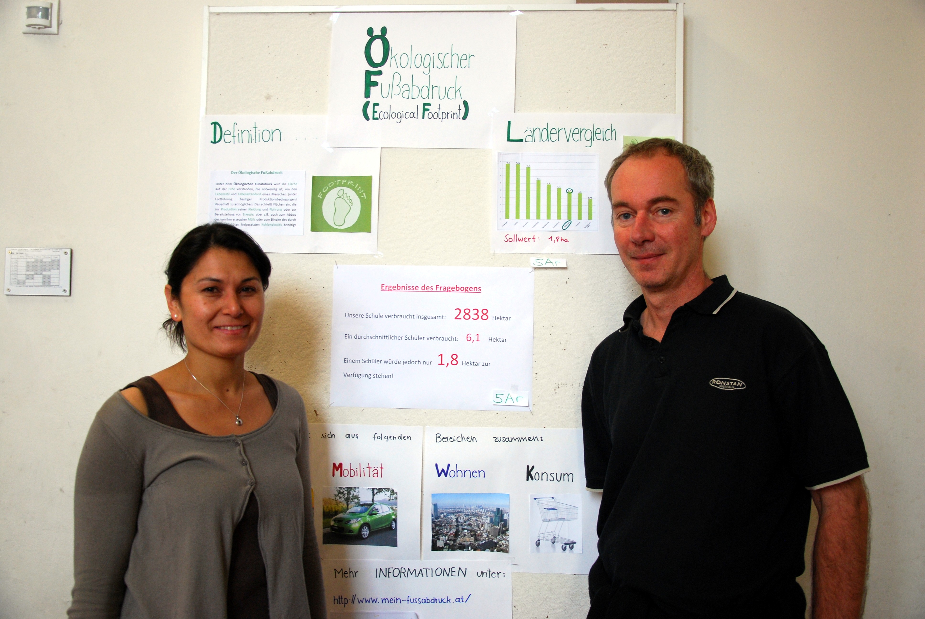 Evelyn Miiterbacher und Stefan Birkel mit dem ökologischen Fussabdruck des BG Dornbirn.