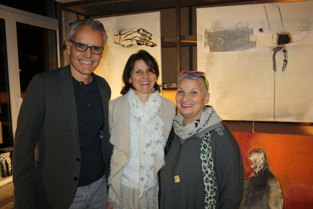 Thomas und Heidi Vogler (Galerie Papillon) mit der Vorarlberger Künstlerin Agi Huber.