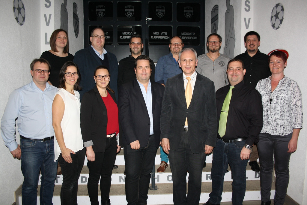 Die Mitlieder des Musikvereinsausschusses: Michael und Michaela Schmid, Selina Immler, Achim Langegg, Vorstand Wolfram Baldauf, Kapellmeister Matthias Walser und Caroline Stefani (1. Reihe, von links); Elke Huber, Martin Mark, Bernhard Huber, Roland Immler, Helmut Immler und Volker Stefani (2. Reihe, von links).