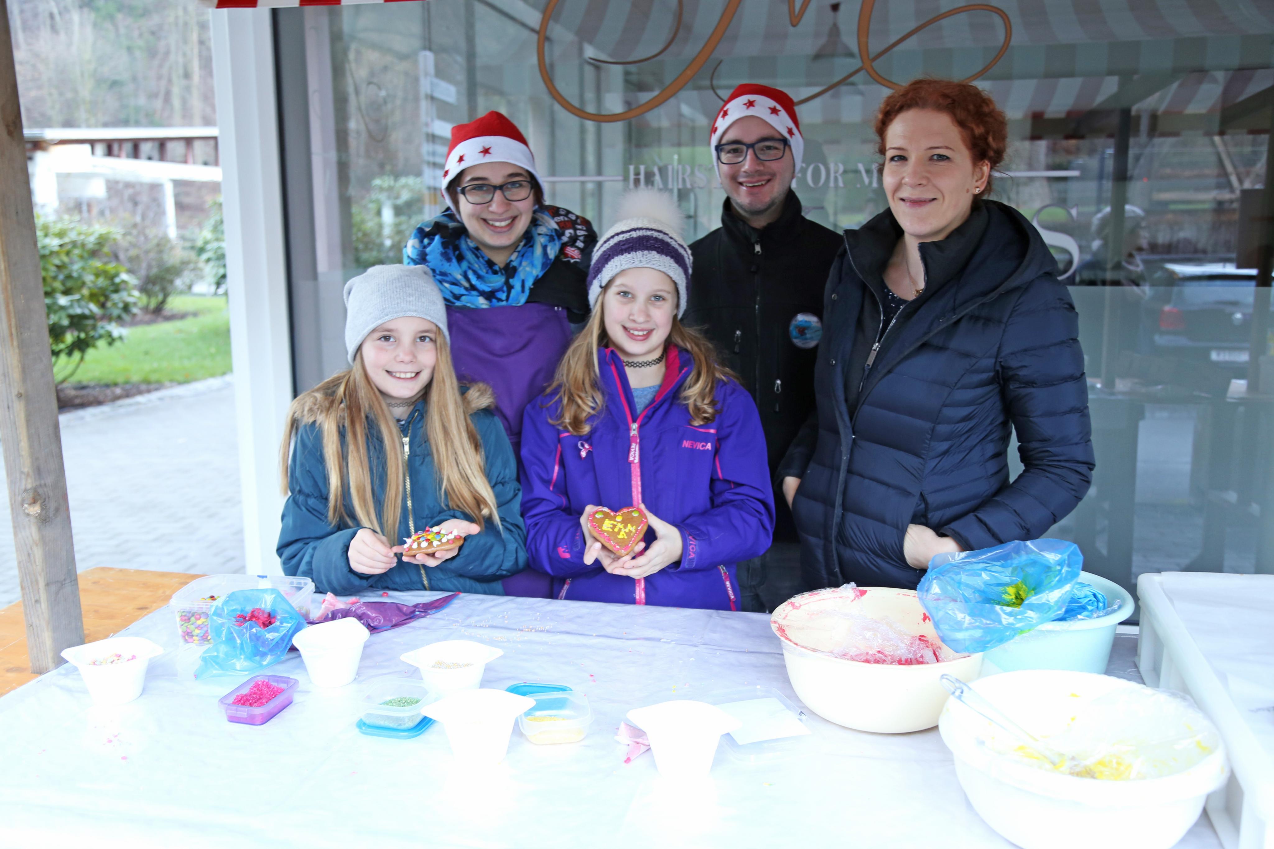 Carina, Magdalena, Emma , Ronald und Irmgard beim Lebkuchenstand.