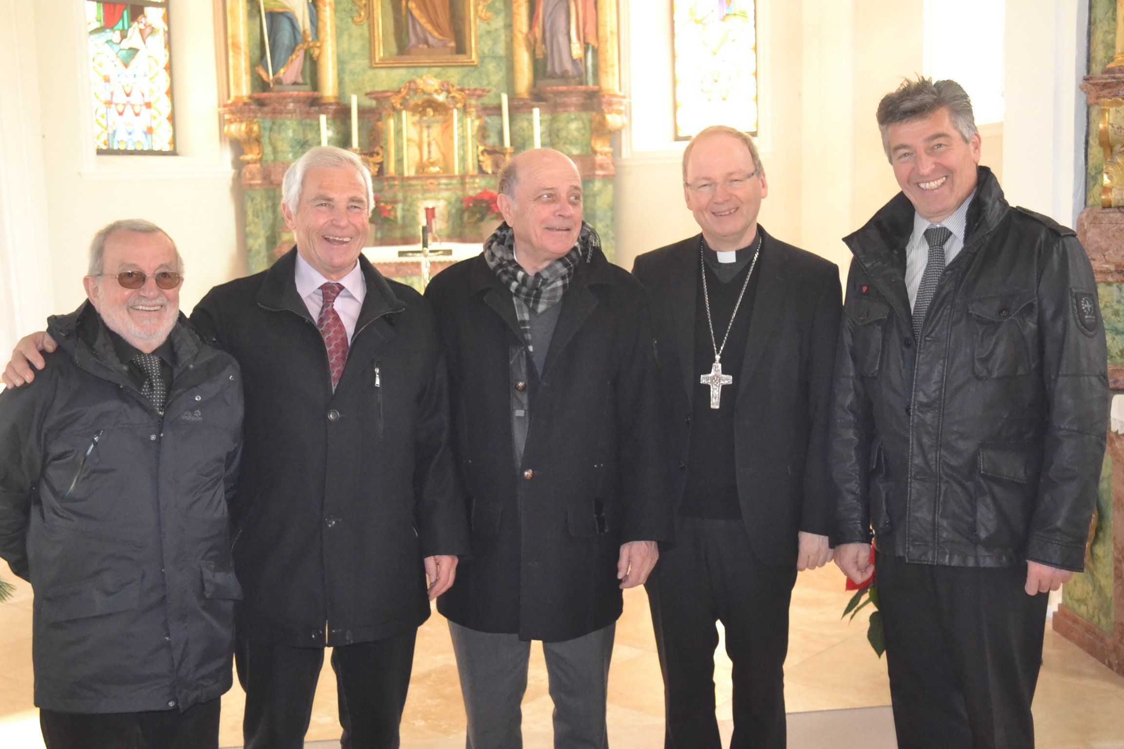 \'Georg Künz, Rüdiger Geiger,Pfarrer Karl Bleiberschnig, Bischof Benno Elbs und Bürgermeister Friedolin Plaickner.