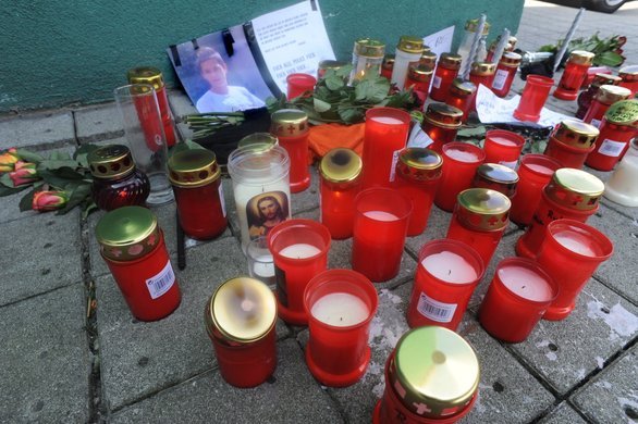 Kerzen, Rosen und Briefe für "Flo" vor Kremser Merkur-Markt