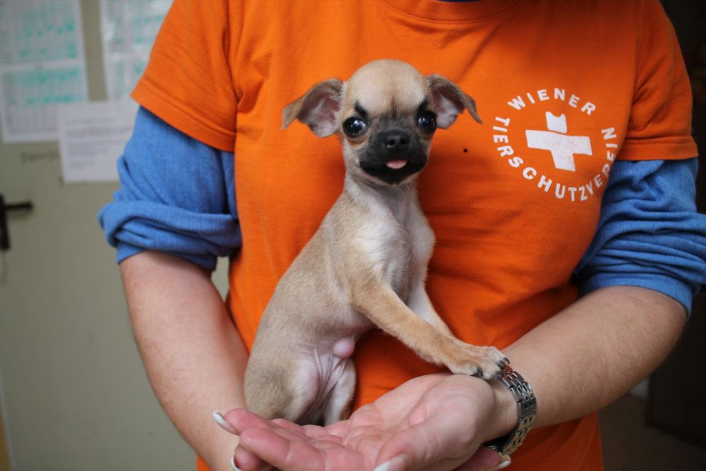 Chihuahua-Welpe "Franzi" in Vösendorf beim Wien in Einkaufskorb ausgesetzt