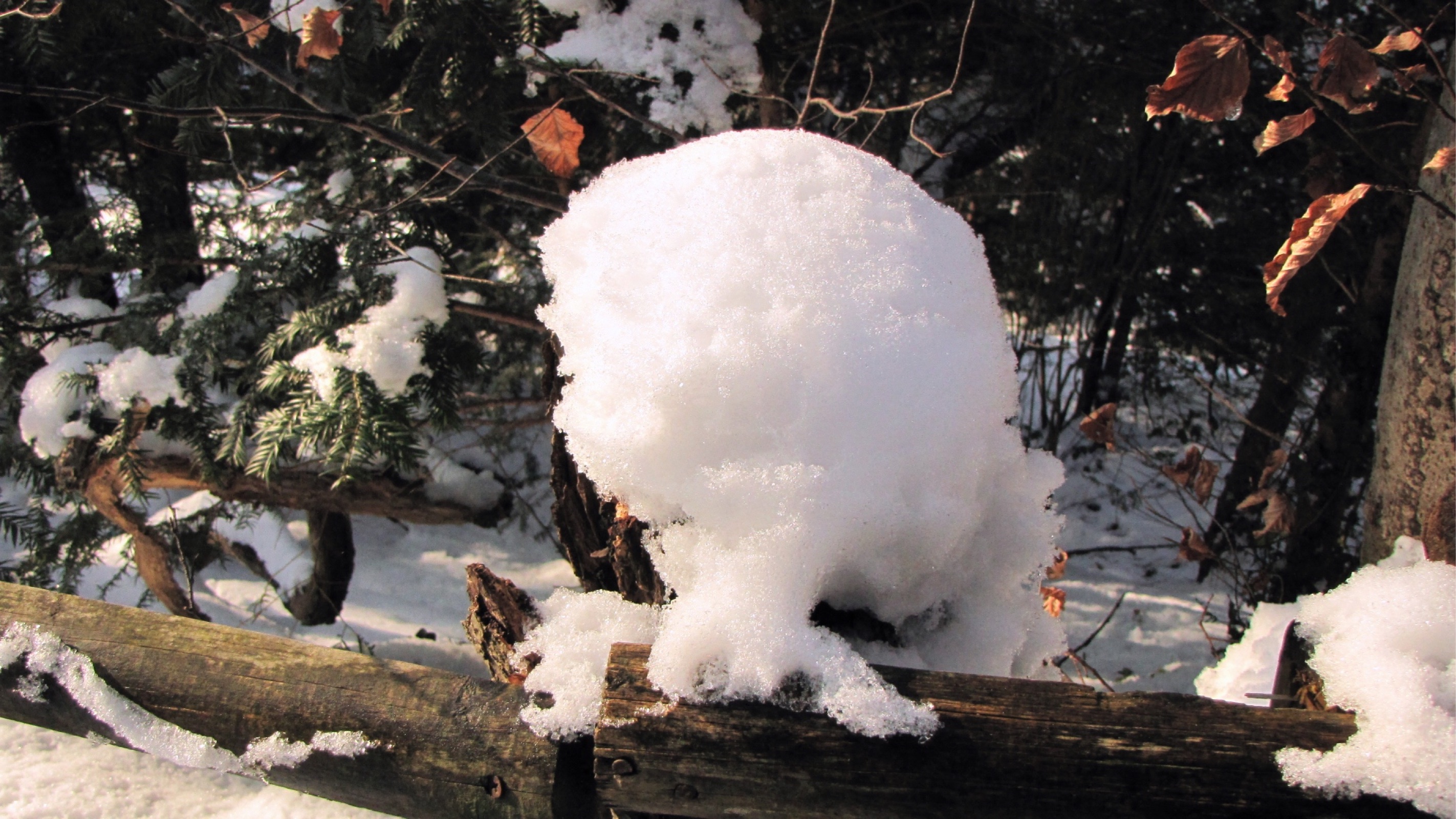 Der Wildpark ist tief verschneit, alles ist in Weiß geschmückt.