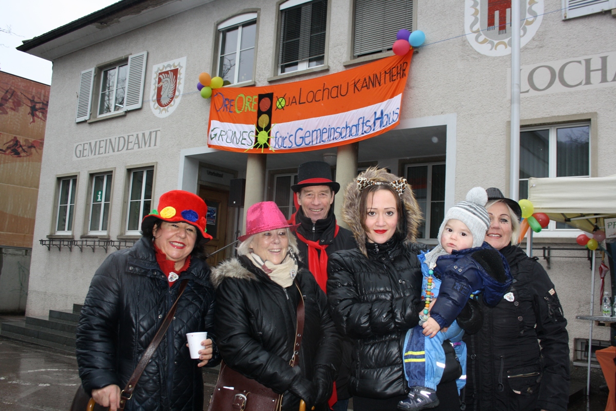 Auch das alte Lochauer Gemeindeamt rückte mit einem großen Transparent noch einmal in den Mittelpunkt.