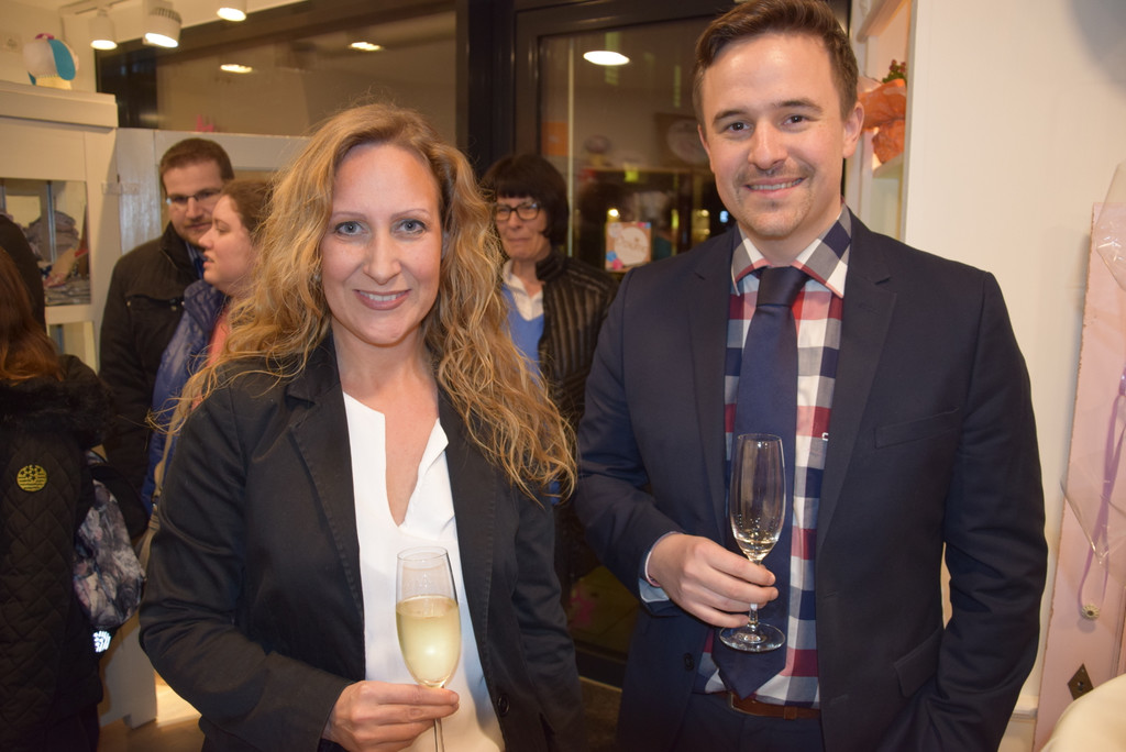 Grafikerin Christina Zwischenbrugger und Jürgen Reis (Sparkasse Feldkirch)