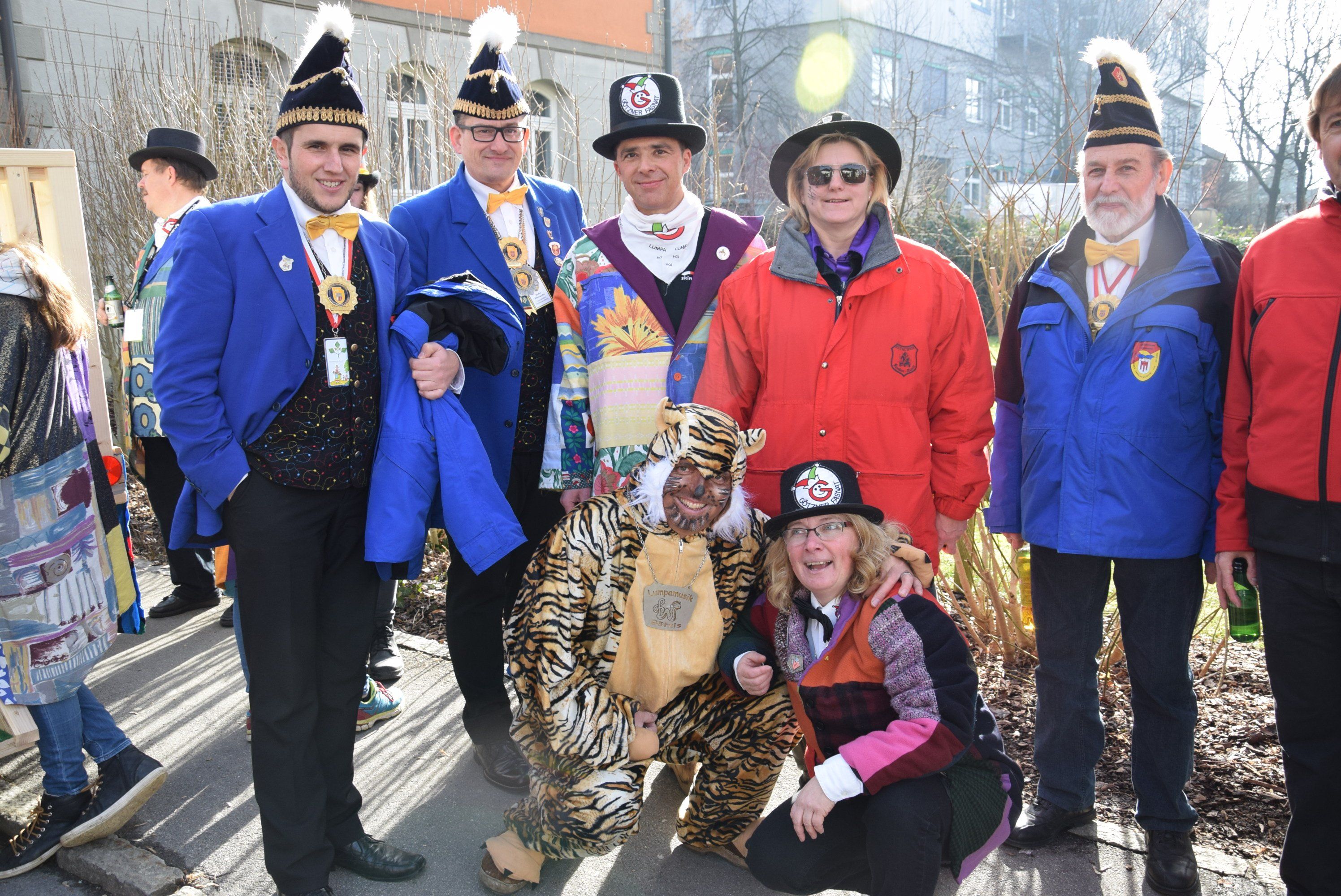 Eine Faschingsabordnung mit Michel Stocklasa (Landespräsident), Vizebürgermeister Clemens Ender, Götzner Fasnat Obfrau Margot Brecher