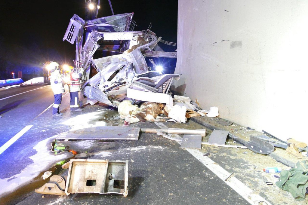 Tiertransporter-Unfall auf A4