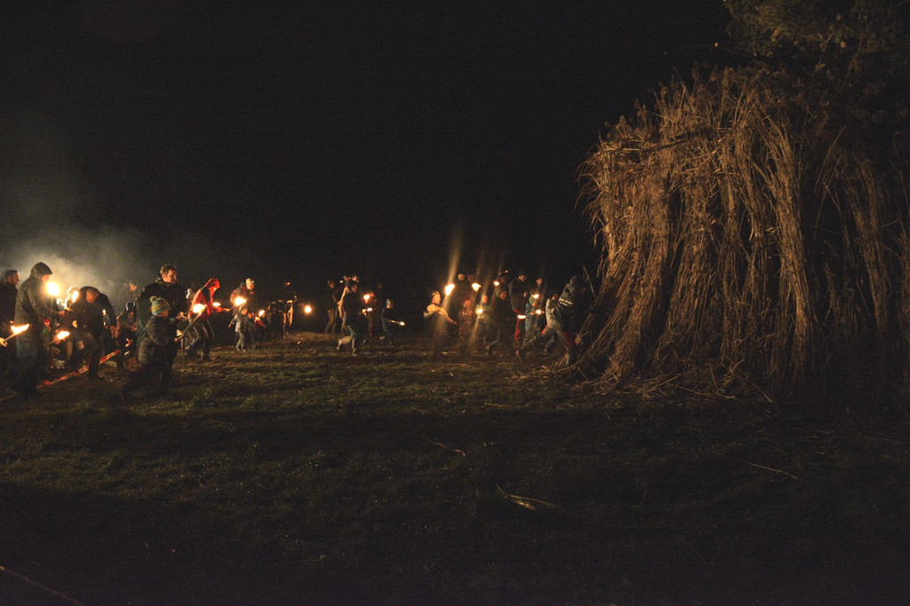 Die Kinder dürfen den Funken mit ihren Fackeln entzünden.