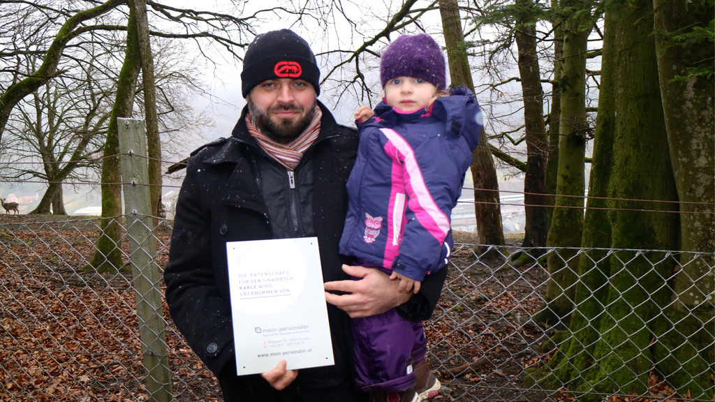 Matthias Graziadei von der Firma Mein-Personaler kam mit der begeisterten kleinen Wildparkbesucherin Klara