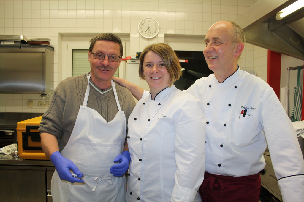 Pflegeheim Jesuheim als „Sponsor“ des gemeinsamen Abendessens: Jesuheim-Chefkoch Erich Paterno, Irene Jürgens und Andreas Ill, von rechts.