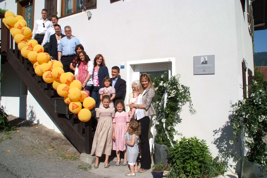 Die Sika-Dynastie auf der Stiege des Kaspar-Winkler Geburtshauses.