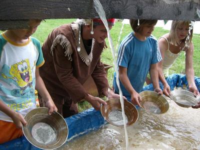 Goldgräber beim Goldwaschbrunnen in der Wachau. (Familienpark Wachau)