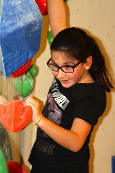 Väter und Kindern beim Bouldern