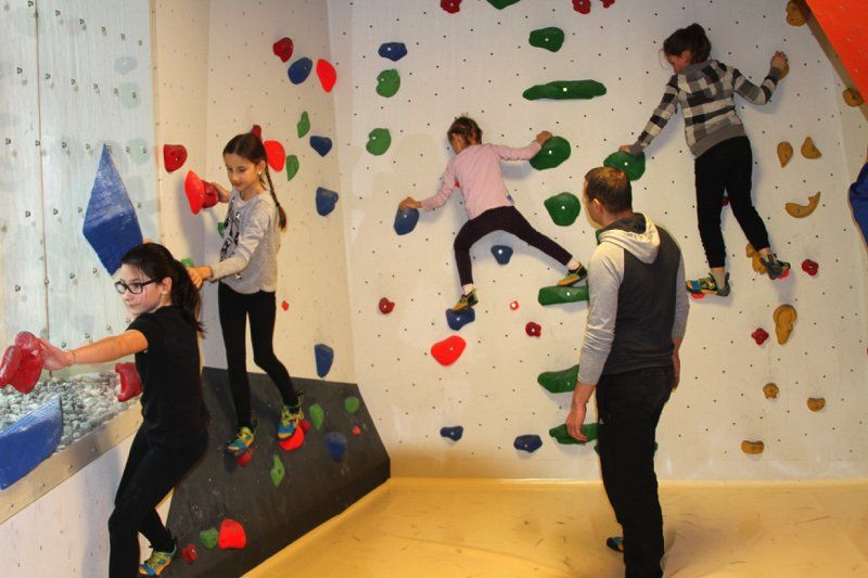 Väter und Kindern beim Bouldern