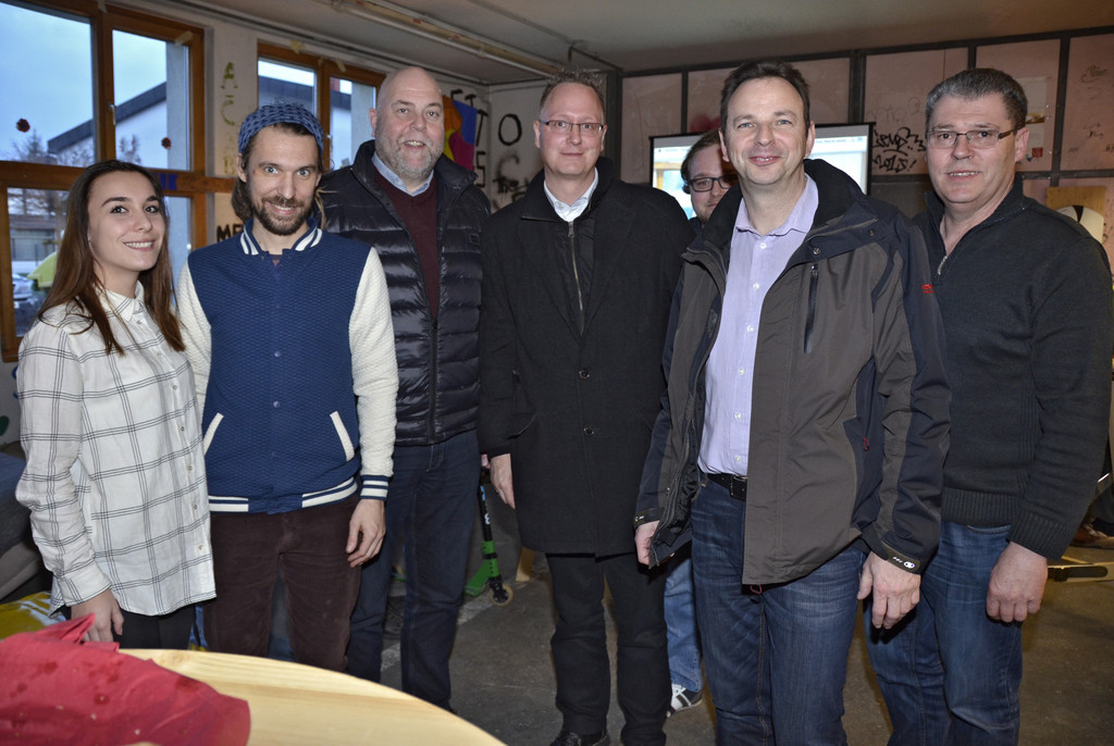 Leitung der OJA und die politischen Vertreter der Gemeinde. V.l.: Anja Matt, Peter Ionian, Bgm. Thomas Pinter, GR Thomas Gehl, GR Gerd Fleisch, Fredi Zöhrer (Jugendausschuss).