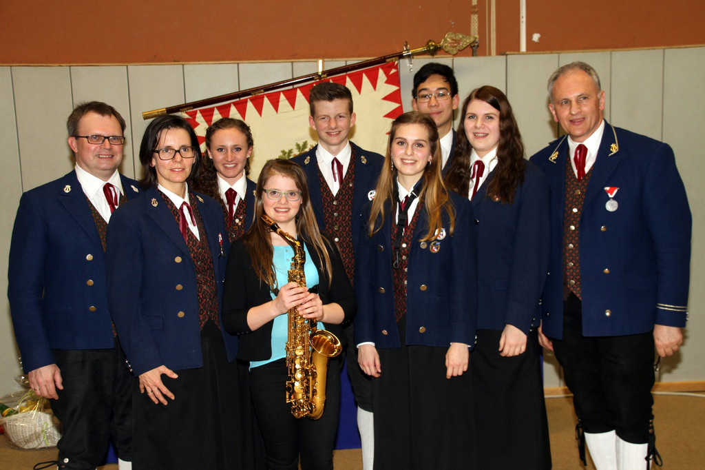 Ausgezeichnete Nachwuchsarbeit im Musikverein Lochau: Jungmusikerleistungsabzeichen in Bronze, Silber und Gold für sechs erfolgreiche Jungmusikanten, im Bild mit den Jugendreferenten Michaela und Michael Schmid sowie Vorstand Wolfram Baldauf.