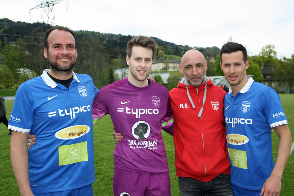 Spielertrainer Pablo Antonio Chinchilla Vega, Tormann Lukas Holzner, Co-Trainer Marco Bologna und Goldtorschütze Fabian Fink.