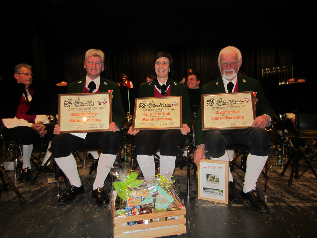 v.li. Rudolf Mittelberger, Petra Mathis und Erwin Nachbaur wurden für ihre treue Mitgliedschaft geehrt.