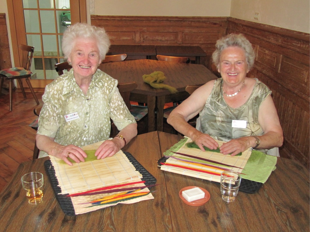 Mathilde Gassner und Erika Gorbach hatten sichtlich Freude beim Basteln des Tischsets