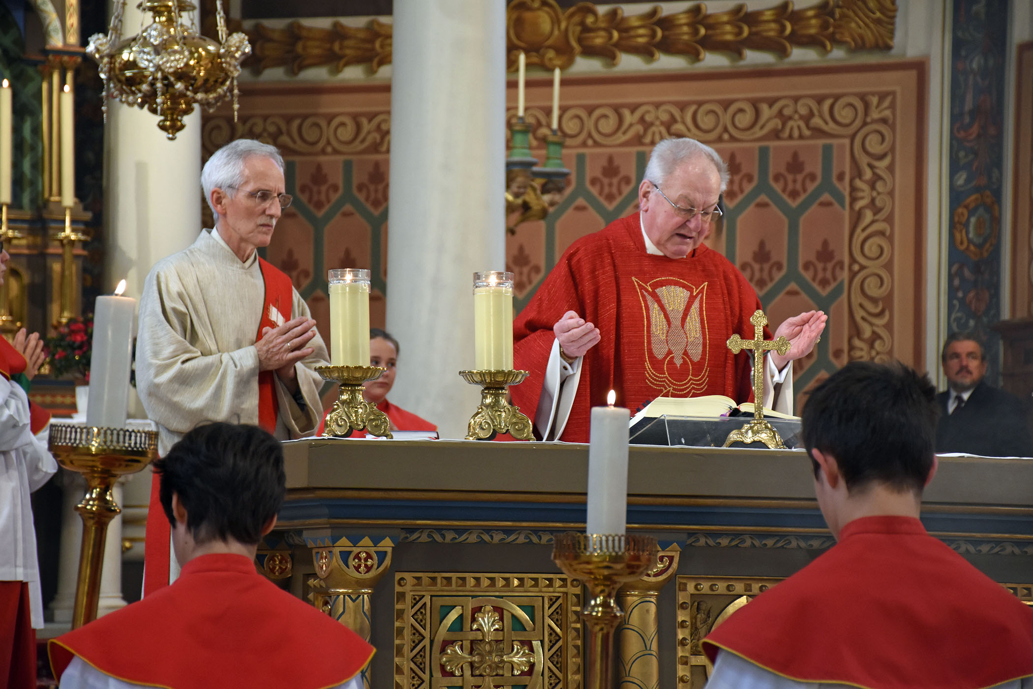 Pfarrer Herbert Böhler (rechts im Bild), Diakon Elmar Stüttler - Foto: (c) Gerhard Scopoli - Schruns, Pfingstsonntag, 15. Mai 2016
