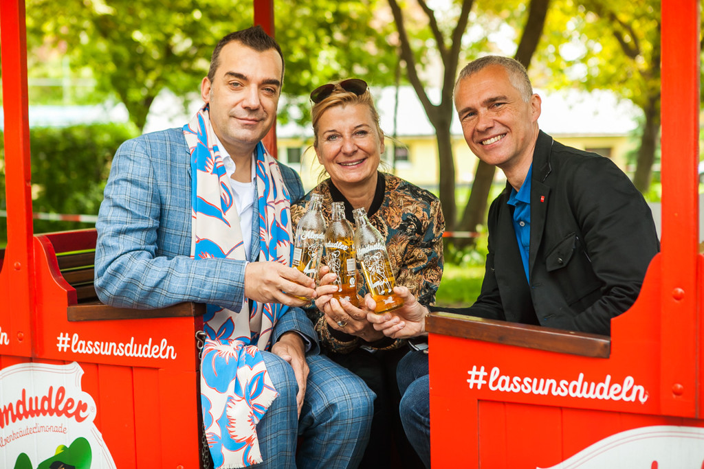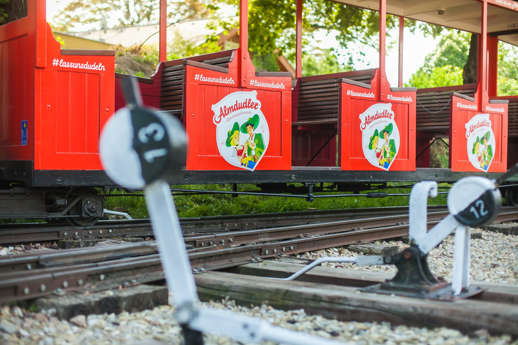 Liliputbahn hüllt sich in Almdudler-Design
