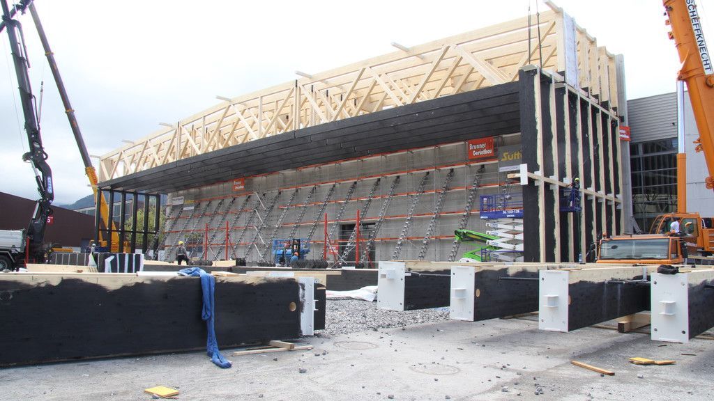 Bilder von den Holzbauarbeite bei der Messe Dornbirn