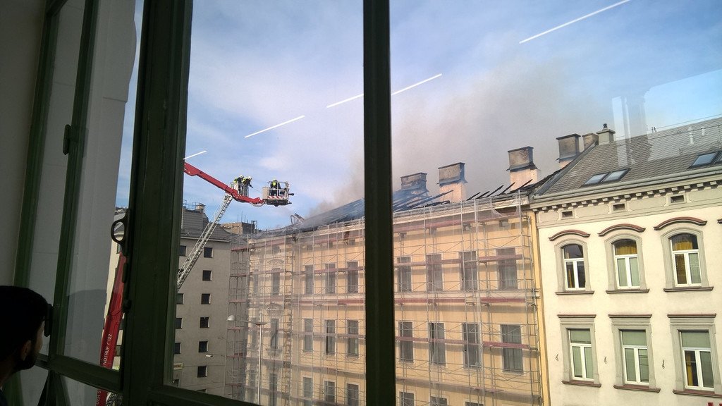 Dachbrand in Alsergrund: Bilder brennenden Hauses