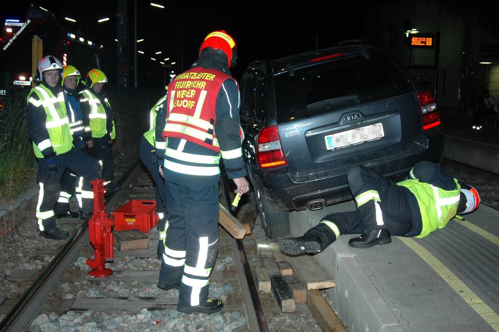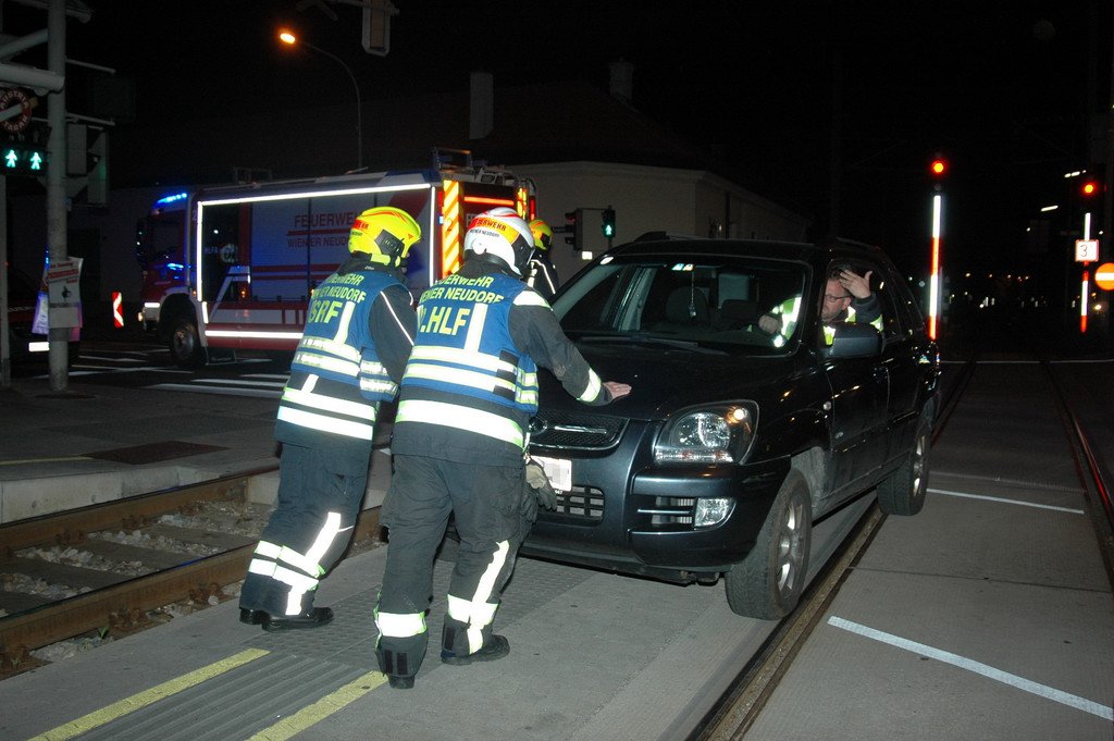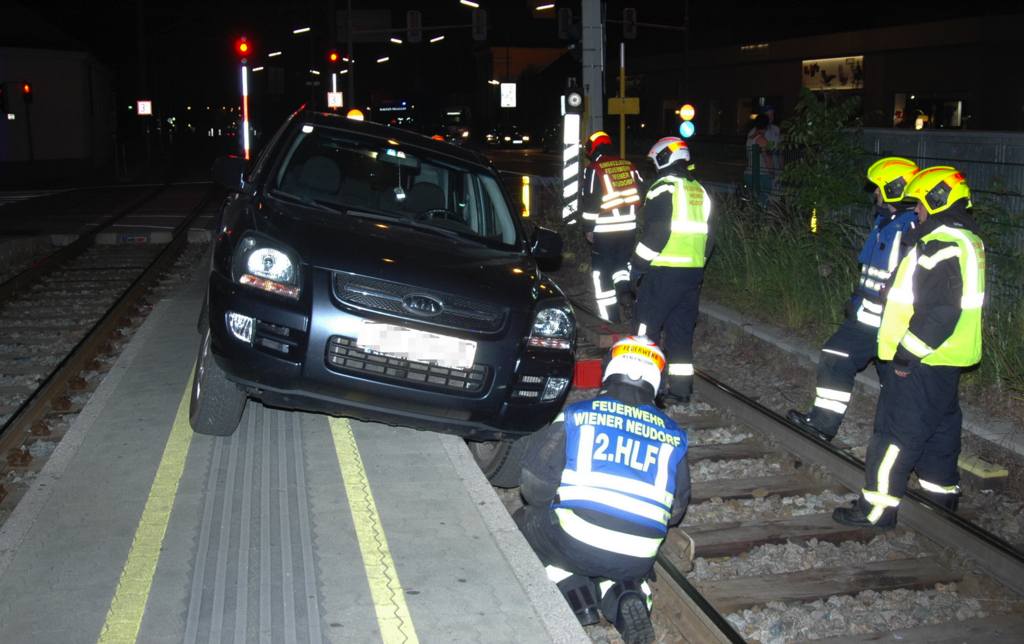 Geländewagen steckt am Bahnhof Wiener Neustadt in Schienen fest: Einsatz