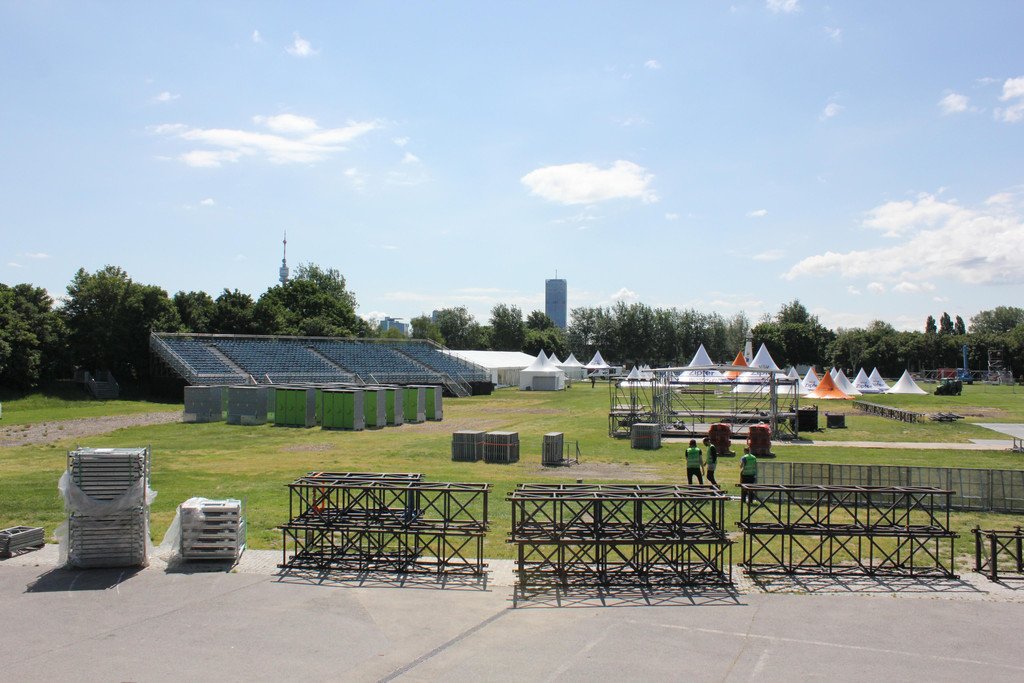 Aufbauarbeiten beim Rock In Vienna 2016