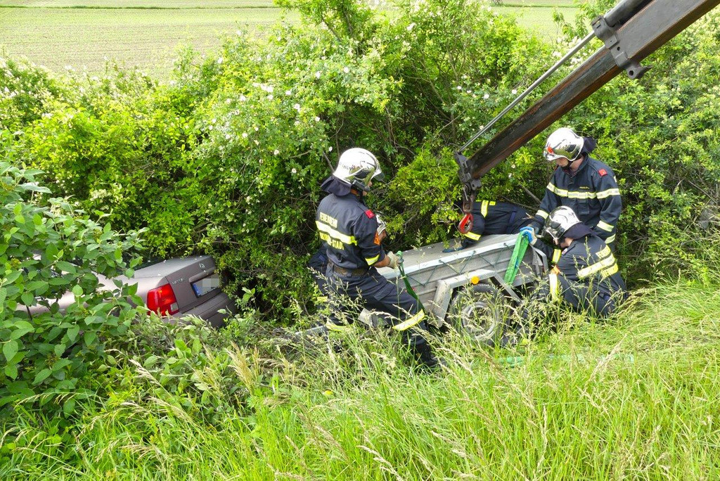 Auto samt Anhänger in Straßengraben