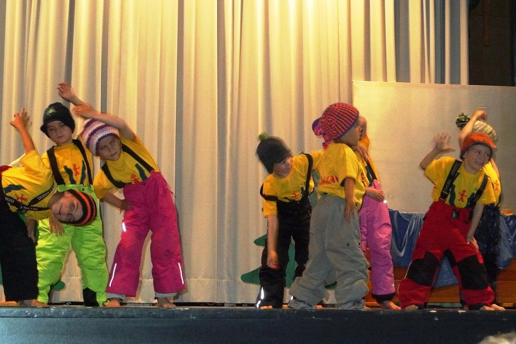 Die Dafinser Kindergärtler gestalteten einen Programmpunkt zum Thema Schifahren in Furx.