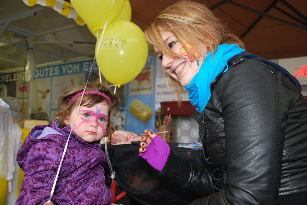 Frank liess sich beim Full House Stand ein Schmetterlingsgesicht schminken.