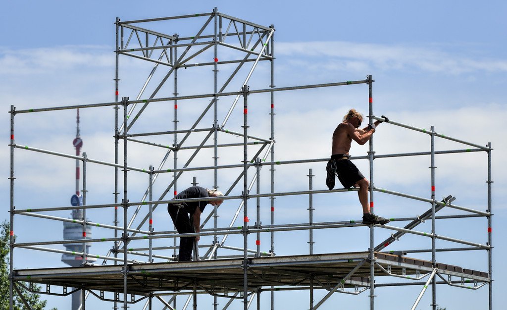 Aufbauarbeiten zum Donauinselfest 2016