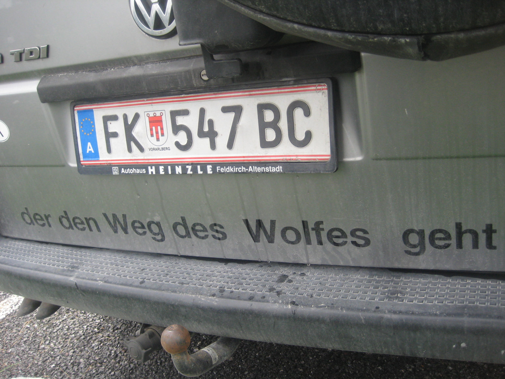 Ziert das Hintere des Busses: die Namensdeutung für Wolfgang aus einem Sagenbuch der Indianer.